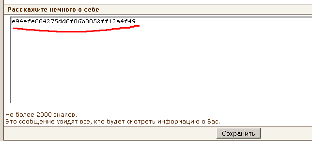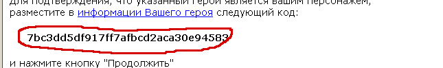 - вам предлагается разместить уникальный код, в информации вашего персонажа