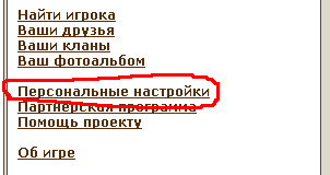 - в новом окне, перейдите (зайдите) в игру, и откройте страницу "Персональные настройки"