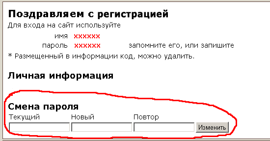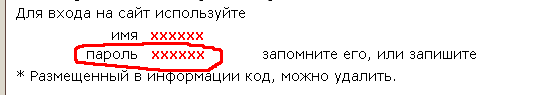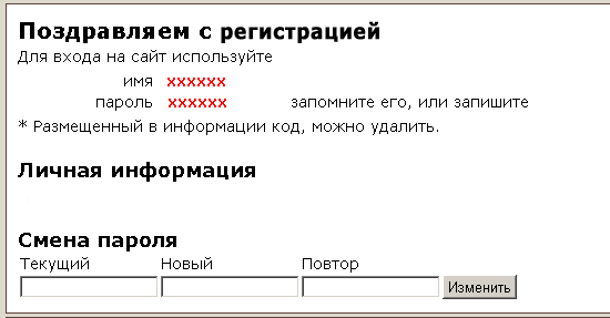- сразу после регистрации, в первый и последний раз, на этой странице, отобразится Ваш пароль для входа на сайт